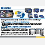 Échangez votre imprimante de sécurité contre un nouveau modèle Brady* et expérimentez l'évolution en matière d’identification. Accédez à un large éventail professionnel de panneaux, marqueurs de tuyauteries, rubans de marquage au sol et étiquettes qui restent attachés et lisibles, même dans des conditions extrêmes.